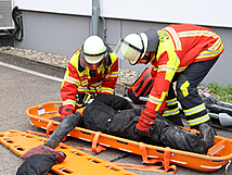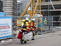 An drei Terminen im Juni und Juli 2024 hat dafür die Freiwillige Feuerwehr Kirchzarten die Stockwerke des Rohbaus für Rettungsszenarien genutzt. Mit einem professionellen Team um Feuerwehrkommandant Karlheinz Strecker erfolgte der Aufbau anspruchsvoller Übungen mit Personenrettung und Brandbekämpfung, die durch die Einsatzkräfte gemeistert werden mussten.